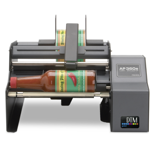 Los aplicadores de etiquetas DTM de la Serie-AP, como el DTM AP360e, son la solución ideal para el etiquetado semiautomático de una variedad de envases cilíndricos, incluyendo botellas, latas y más. El AP360e de DTM ofrece un montaje rápido y una operación sencilla en solo tres pasos: posiciona las guías, coloca el contenedor y presiona el interruptor de pie para aplicar la etiqueta de manera precisa.