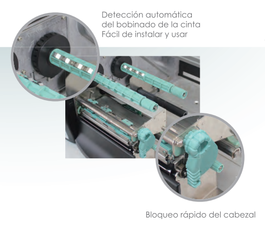 El modelo EZ-6350 i, admite cintas de Ribbon tanto en Bobinado IN, como OUT. de hasta 450 Metros.