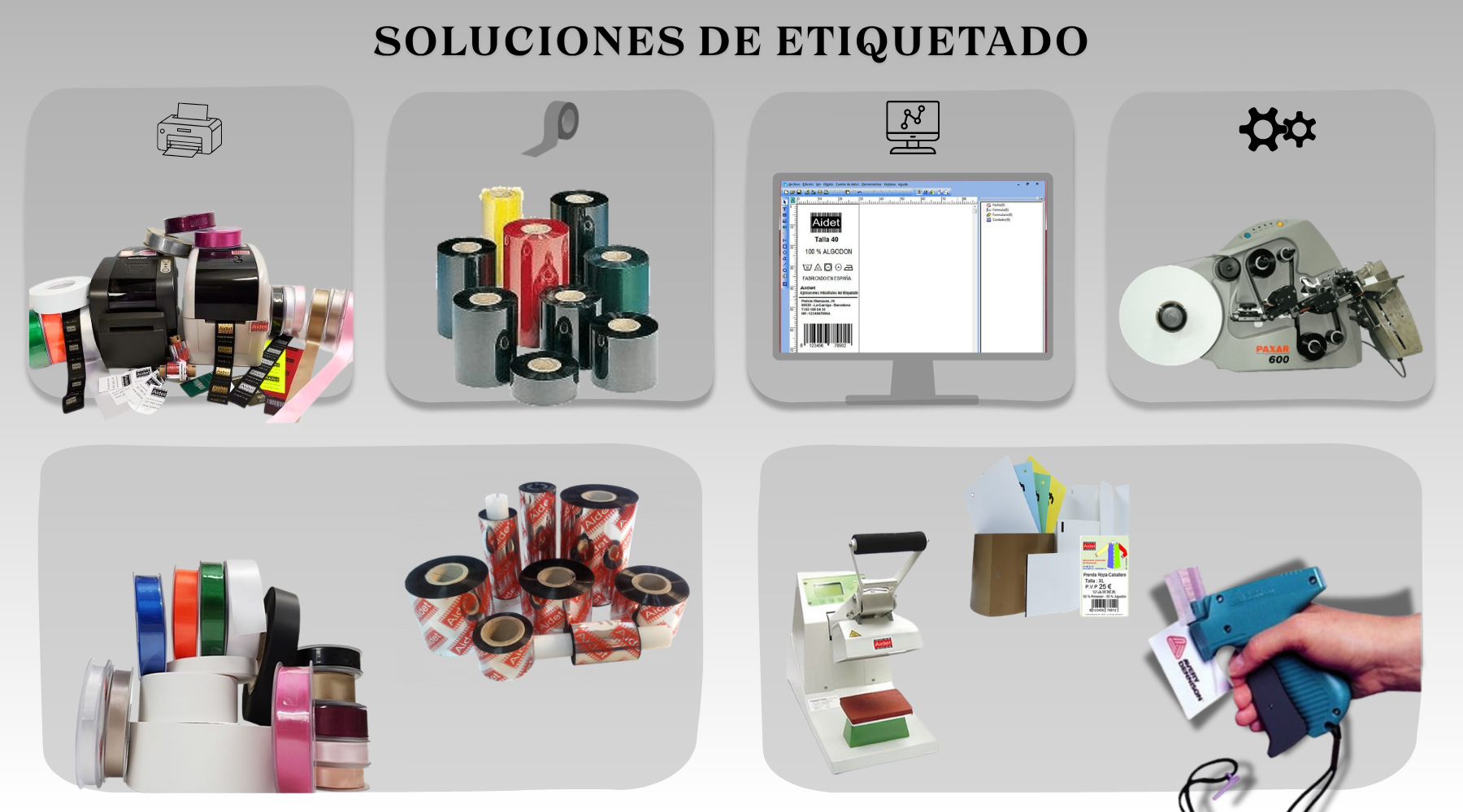 En Aidet Ofrecemos una amplia gama de Productos y Soluciones, para el etiquetado de ropa para el Sector Textil.